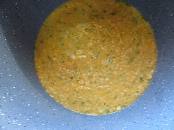 4- Sin lavar el vaso, batir los huevos con un poco de sal y perejil picadito, 10 seg. vel.4. Mezclar con la coliflor y cuajar en una sartén por ambos lados.