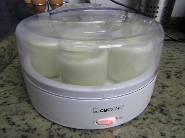 En yogurtera sin tapar los vasitos, conectada 8 horas.