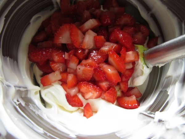 Unir con las fresas maceradas y llevar a la nevera