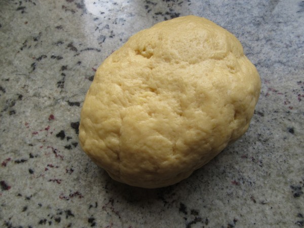 1- Huevos, anís, aceite, sal, azúcar, levadura y harina, 20 seg. vel.6. Hacer una bola y dejar tapada unos 20 minutos.