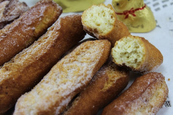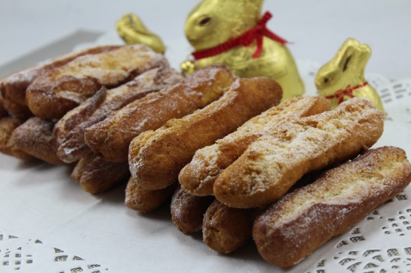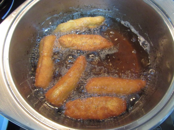 3- Freír en abundante aceite caliente a fuego medio-alto. Espolvorear con azúcar glas.