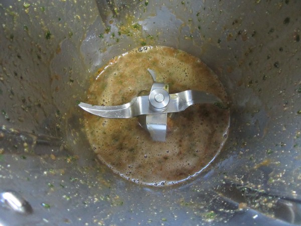 2- Resto de ingredientes al vaso, huevo, ajo en polvo, perejil picado, pimientas, jengibre, salsa de soja, aceite de oliva, sal y curry, emulsionar 4 seg. vel.4. Volcar sobre las pechugas y dejar macerar unas horas o de un día para otro y hasta dos días, si se quiere.