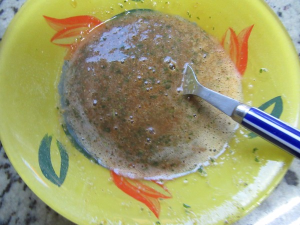 2- Resto de ingredientes al vaso, huevo, ajo en polvo, perejil picado, pimientas, jengibre, salsa de soja, aceite de oliva, sal y curry, emulsionar 4 seg. vel.4. Volcar sobre las pechugas y dejar macerar unas horas o de un día para otro y hasta dos días, si se quiere.