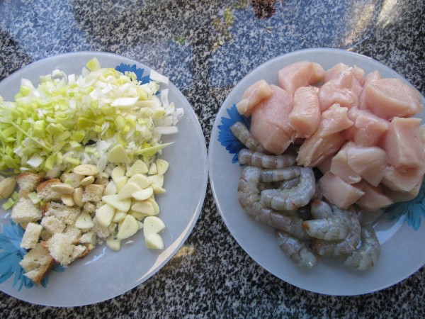 Pechugas y langostinos ya guisados
