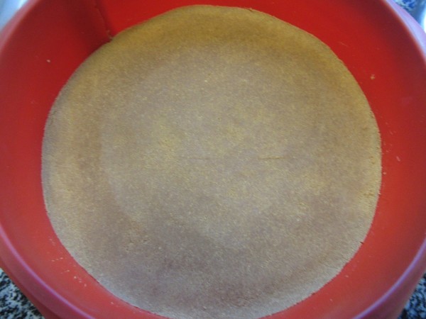 1- Moler las galletas con golpes de turbo. Añadir la mantequilla fría (100 gr.), 15 seg. vel.6. Forrar la base de un molde desmontable de unos 23 a 26 cm., alisar bien y llevar a la nevera.