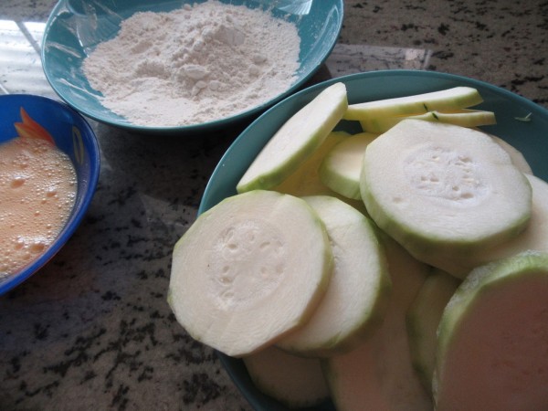 Preparación:1- Cortar el calabacín en rodajas y salar, pasar por harina (sacudiéndolas para quitar el exceso) , pasar por huevo batido y freír en el aceite , sólo que se dore el rebozado. Ir colocándolas en una fuente. Reservar.