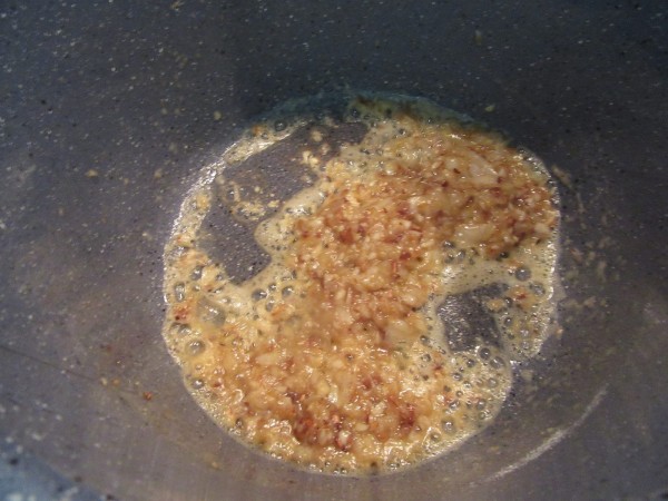2- En el mortero, hacer una majada con 2 dientes de ajo , perejil y sal. Reservar.