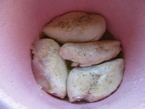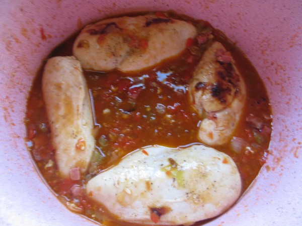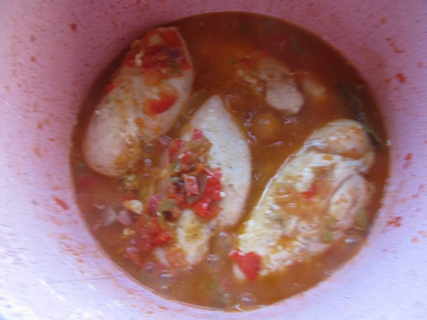 Preparación:1- Dorar las pechugas salpimentadas con aceite en menú freír. Reservar.