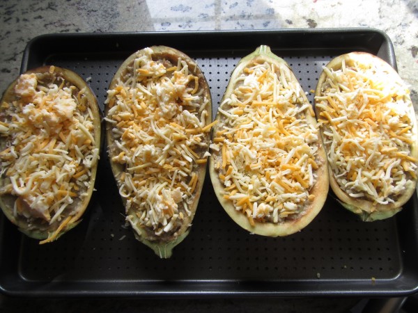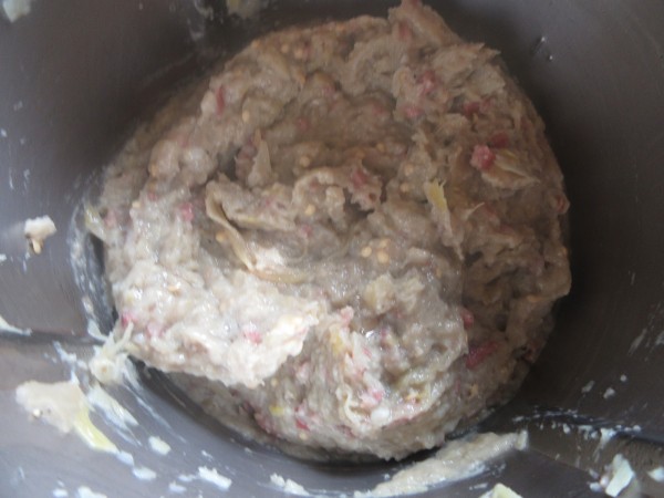 4- Agregar el pan rallado, huevos y sal, mezclar 10 seg., giro izda., vel. 3. Secar los cascos bien y rellenar. Cubrir con queso rallado.
