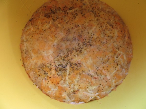 3- Abrir y, SIN cancelar menú, para que se termine de hacer, espolvorear queso rallado y orégano y colocar el cabezal unos 10 minutos a 200º hasta que tome color. Dejar templar y desmoldar.