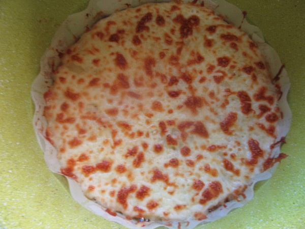 5- Abrir, espolvorear queso rallado y colocar el cabezal hasta que tome color, unos 10-15 a 200º.