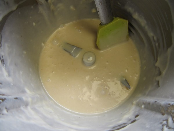 3- Mezclar la leche evaporada, huevos, mantequilla, harina, sal, pimienta y nuez moscada, 15 seg. vel.6. Volcar sobre el bol de las patatas y mezclar muy bien, para que entre por todos los lados y haga de "pegamento".