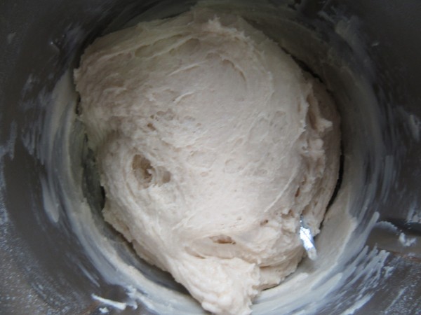 1- Todos los ingredientes a temp. ambiente por el orden que se indica, harina, agua, leche, levadura deshecha con los dedos, azúcar glas, aceite, huevo, sal, semillas anís y aromas, 4 min. Espiga. Levar en un lugar cálido tapado hasta que doble volumen.