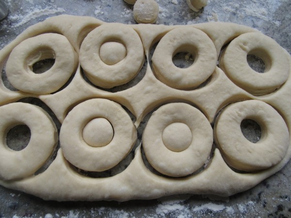 2- Con la meseta enharinada, estirar la masa, y cortar con cortapastas. Tapar y dejar levar de nuevo. Pintar con cuidado con huevo batido.