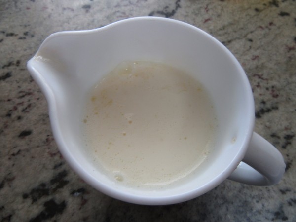 1- Hidratar 5 minutos la gelatina en agua fría. Escurrir y disolver en 50 gr. de nata caliente. Dejar templar.