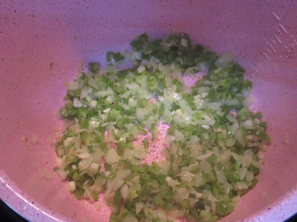 2- Picar la cebolla, ajos y pimiento menudos y pochar en menú freír con un poco de aceite, hasta que esté blando
