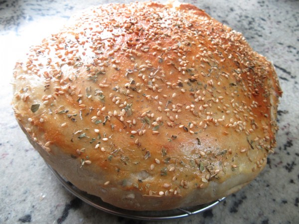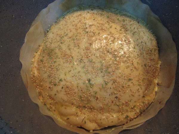 4- Menú pan u horno, válvula abierta, 40 minutos, 160º. Cancelar menú. Pincelar con huevo o aceite y espolvorear orégano y semillas de sésamo. Después, dorar con el cabezal unos 15 minutos a 200º, hasta que tome color.