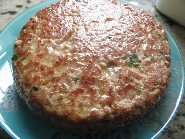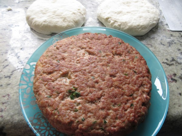 Preparación:1- Adobar la carne con 1 huevo, sal, pimientas, ajo en polvo, cebolla en polvo y perejil. Formar una hamburguesa de unos 16 cm. diámetro, engrasar alrededor con aceite con una brocha y sellar en la cubeta, en menú freír solo dorar la carne por fuera, vuelta y vuelta. Dejar enfriar.