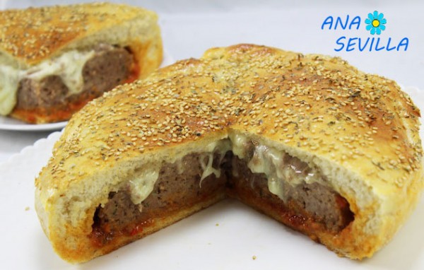 Original manera de comer hamburguesa, masa de pan casero con hamburguesa XXL. Es muy fácil.*Con esta receta, podéis participar en el 55º JUANIRETO de mi grupo Juaneando con Ana Sevilla, entre todos los que pertenezcan a él.