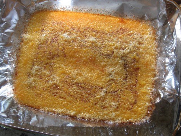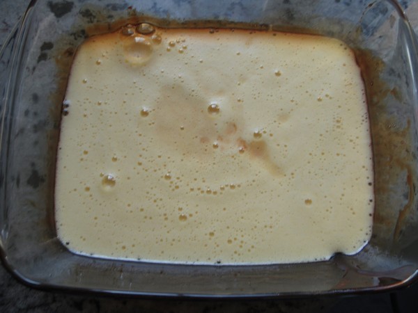 3- Caramelizar una fuente de horno de unos 24 x 18 cm. y volcar el preparado. Tapar con albal.