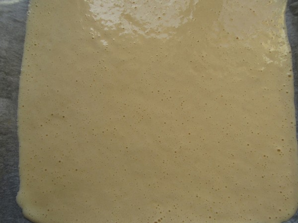 4- Extender uniformemente, sobre la bandeja de horno forrada con papel de hornear y hornear (180º) unos 8 -10 minutos, Que quede blanquito. Dejar enfriar por completo.