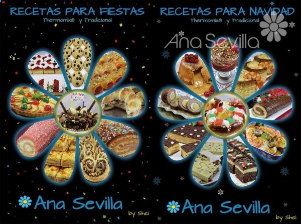 -1er premio: Mi nuevo libro reversible para thermomix y tradicional Fiestas y Navidad y 2 flores de vinilo juaneras.