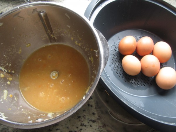 1- Colocar los huevos en el fondo del Varoma. Reservar.