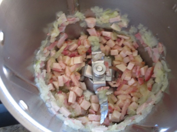 3- Agregar el bacon o pavo, (Yo pongo una mezcla de ambos), 4 min. Varoma, vel.cuchara.