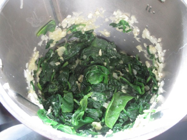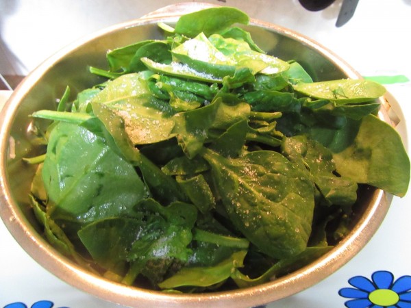 2- Agregar las espinacas y un poco de sal, 5 min. Varoma, giro izda. vel, cuchara.