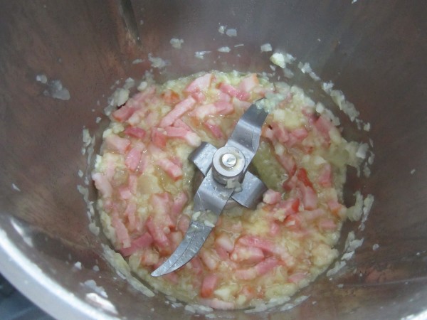 3- Agregar el bacon, 2 min., 100º, vel. cuchara.