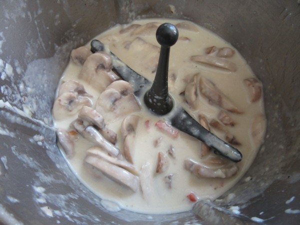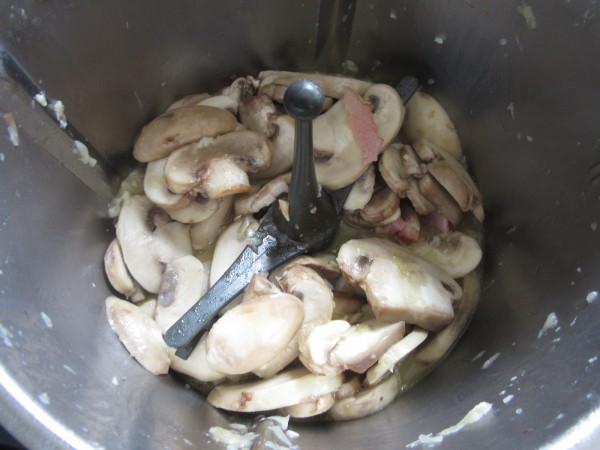 4- Colocar la mariposa, champiñones y sal, 12 min., 100º, vel. cuchara.