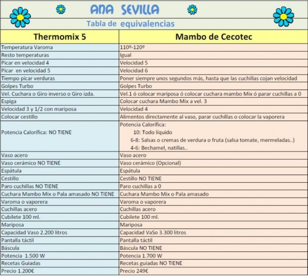 Comparativa Thermomix 5- Mambo