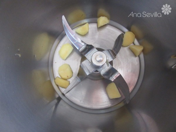 2- Añadir la piña en trozos, agua, sirope de ágave y zumo, 1 min., vel.10.