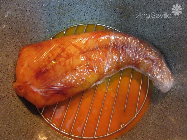Preparación:1- Mezclar un chorro de aceite de oliva con una cta. café de pimentón, sal y pimienta. Embadurnar bien el pescado. Envolver en film, reservar.