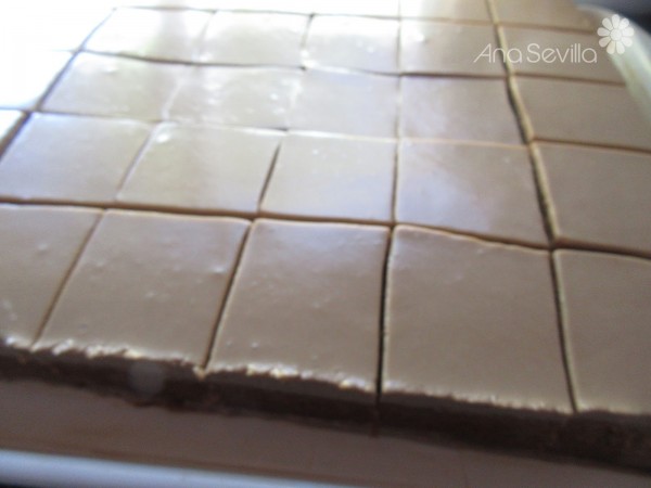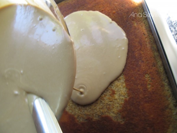 Volcar sobre el bizcocho y llevar a la nevera unas horas.