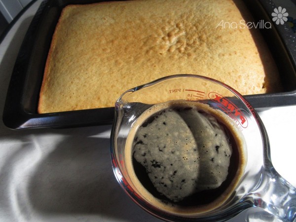 5- Echar en un molde engrasado (Y enharinado si no es antiadherente), de 36 x 26 cm., y hornear de 18 a 20 minutos. Dejar enfriar.