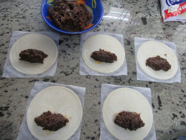 4- Rellenar las obleas, pincelar el borde con agua, sellar y freír u hornear.