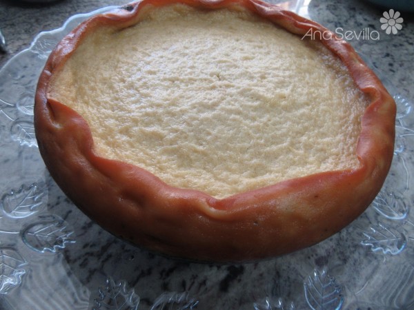 2- Válvula abierta , menú horno, 120º, 100 minutos. Cuando termine, cancelar menú y dejar sin abrir la tapa media hora que temple y se forme el hueco. Dejar enfriar por completo y desmoldar.