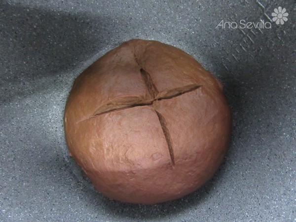2- Con un pizco de harina en las manos, formar una bola , hacer unos cortes y dejar levar tapado en un lugar cálido hasta que doble volumen. (O en olla GM, menú fermentar , válvula cerrada, 70 minutos).