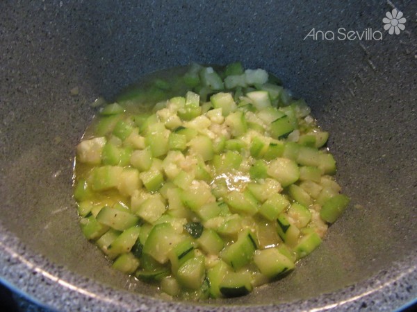 Preparación:1- Picar la cebolla y ajos muy menudos y pochar en menú sofreír con un chorro de aceite unos 6-8 minutos.