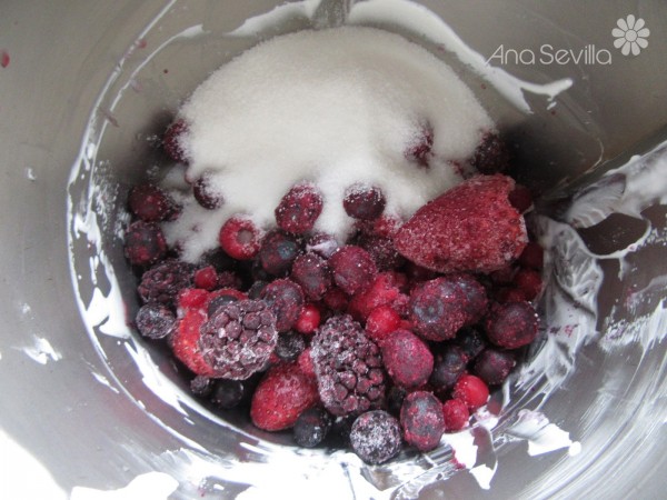 *Podéis sustituir los frutos rojos y el azúcar, por 350 gr. de mermelada de frutos rojos, la calentáis, que llegue a temp. 90º, y disolver la gelatina bien escurrida.