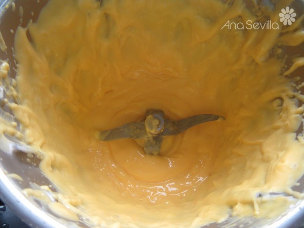 1- Semi-montar la nata a vel. 4 unos segundos, no ha de quedar montada del todo. Reservar en la nevera.