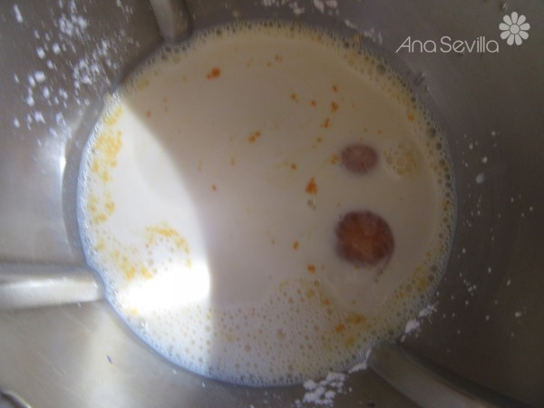 2- Colocar la mariposa, huevos y azúcar, 4 min. 37º, vel . 3 y 1/2. Otros 4 min. Sin temp. misma velocidad.