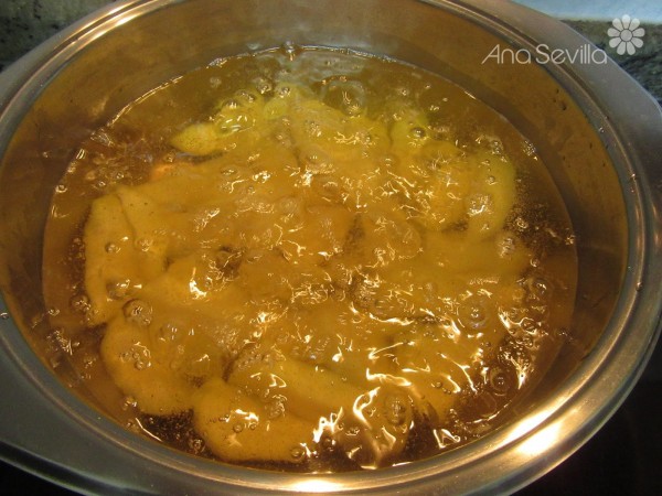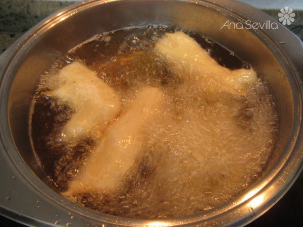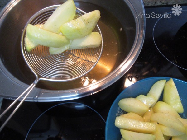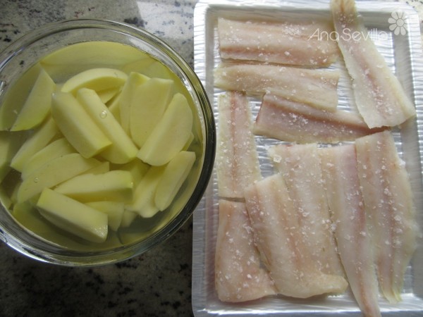 5- Freír el pescado por raciones, junto las patatas pre-cocinadas unos 4-5 minutos a fuego fuerte (180º).