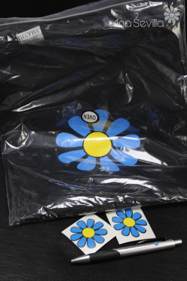 3º- Delantal juanero, bolígrafo y 2 flores de vinilo: