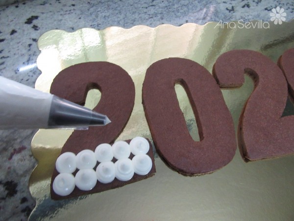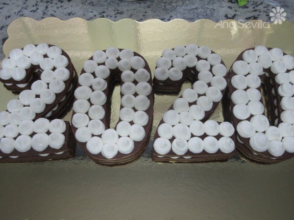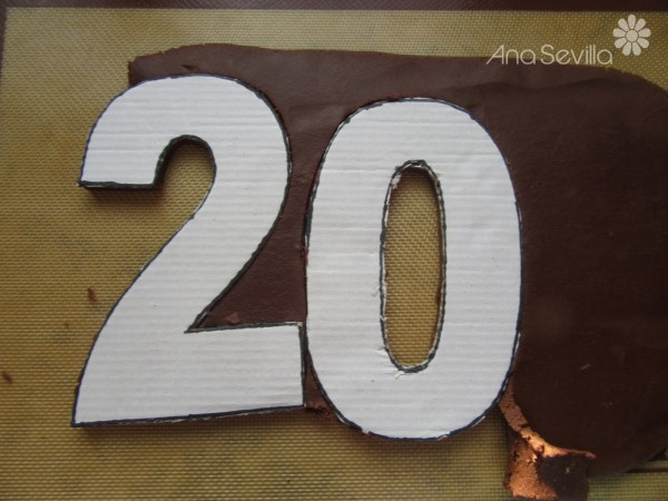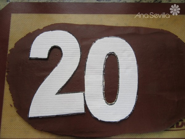 2- Poner la plantilla de número o letra elegido (Éstos son de 16 cm. alto x 10 ancho) y cortar con el filo de un cuchillo afilado. Llevar a la nevera como media hora