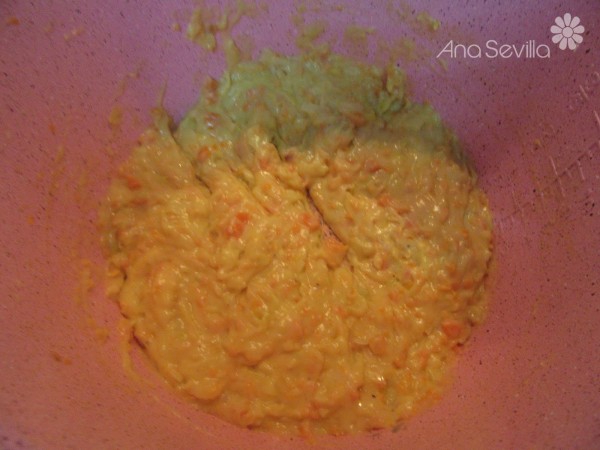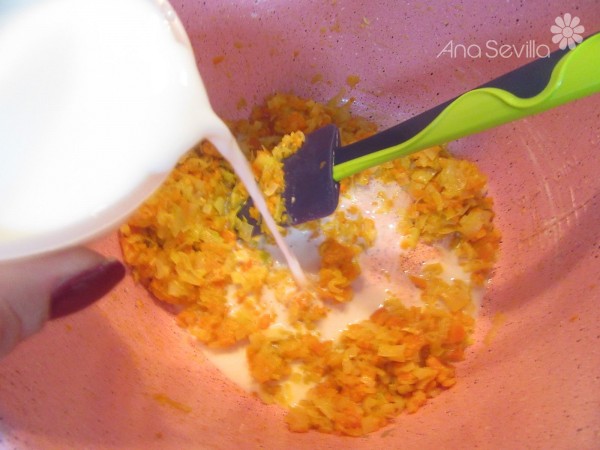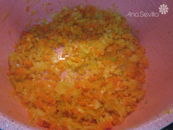 2- Picar la zanahoria y puerro menudos y sofreír unos 10-12 minutos con el aceite y mantequilla.