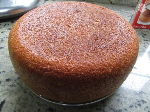 Bizcocho de naranja con un toque de ron y agua de azahar. Está tremendo de rico.