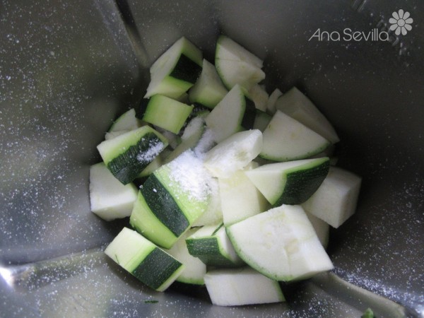 4- Agregar el calabacín bien escurrido, 10 seg., vel.5. Llevar a un bol a la nevera como una hora, para que tome sabor.