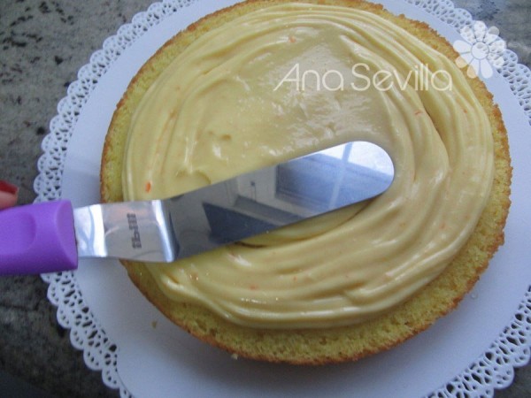 -Montaje: Cortar el bizcocho en 3 discos, almibarar e ir rellenando con la crema, cubrir con el resto y adornar a gustos. Servir bien fría.